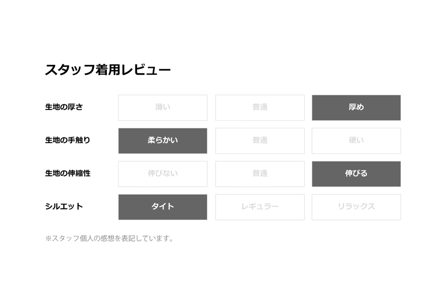 ※詳しいサイズは下にある商品サイズ(仕上がり寸法)表、サイズガイド、およびスタッフ着用レビューをご確認ください。