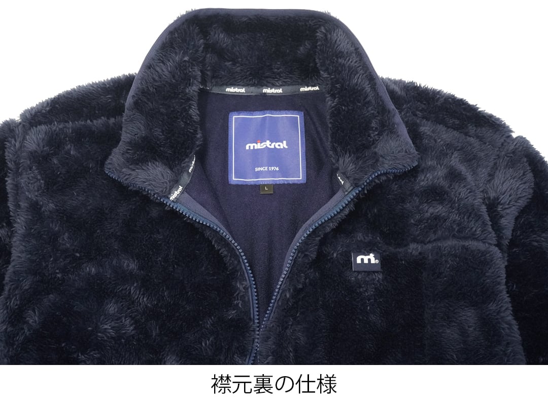フロントファスナーの両サイドにタコ糸入りの補強生地を設けることで、長い毛足のファスナー噛みを軽減。